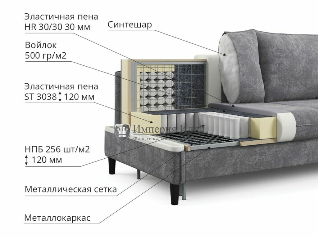 Диван «Стенли» с оригинальной строчкой и металлическим каркасом обладает механизмом трансформации «тик-так», что позволяет легко преобразовывать его в спальное место. Высокие ноги (120 мм) придают ему легкость и элегантность, а металлическая сетка в основании обеспечивает хорошую вентиляцию и комфорт. Скругленные формы делают диван уютным и стильным, идеально вписывающимся в любой интерьер.